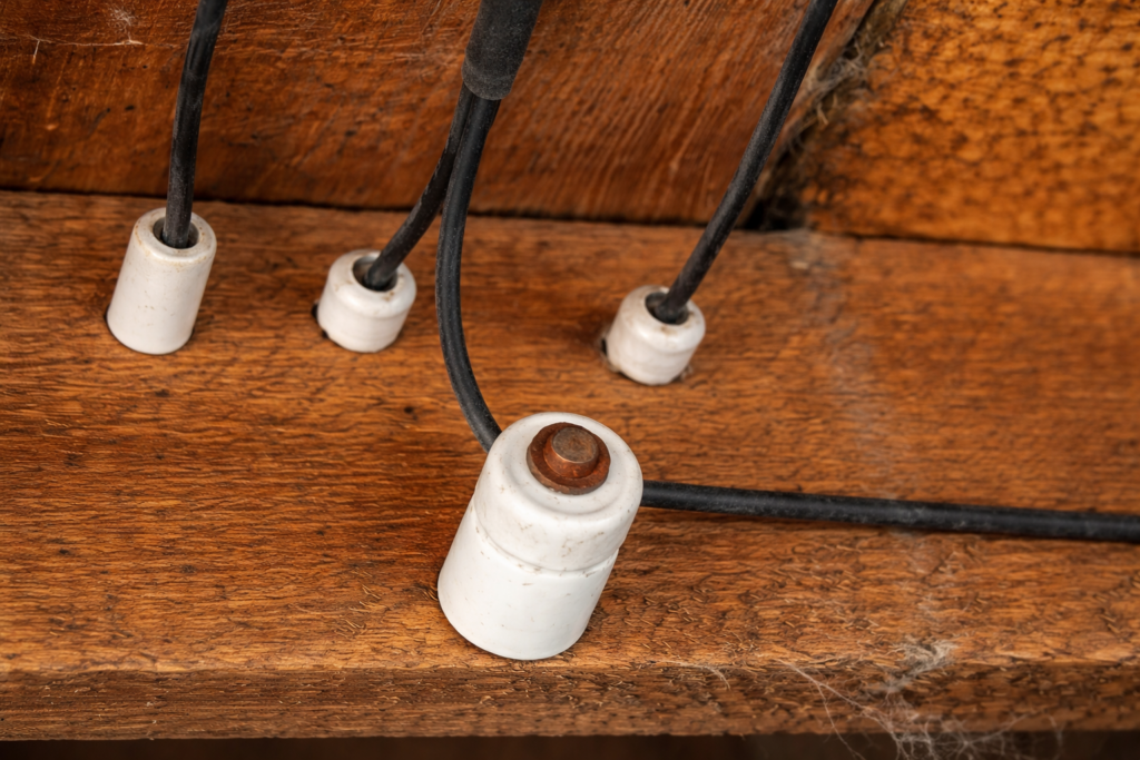 Knob & tube wiring runs individual conductors through ceramic supports and typically lacks grounding. We replace it with fully grounded copper wiring designed to handle modern electrical loads safely.